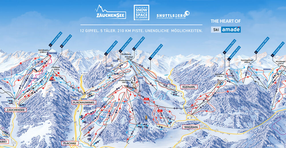 Die Zauchensee 3-Berge Skischaukel verbindet die Skigebiete von Zauchensee, Flachauwinkl und Kleinarl und bietet Wintersportlern ein vielseitiges Terrain mit insgesamt rund 150 Pistenkilometern.